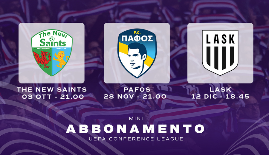 Continua la vendita dei Mini Abbonamenti per la League Phase di UECL 2024/25, disponibili fino al giorno della prima gara ACF Fiorentina vs The New Saints FC in programma il 03/10/2024 ore 21:00, contestualmente da oggi pomeriggio saranno in vendita anche i biglietti delle tre singole partite casalinghe: