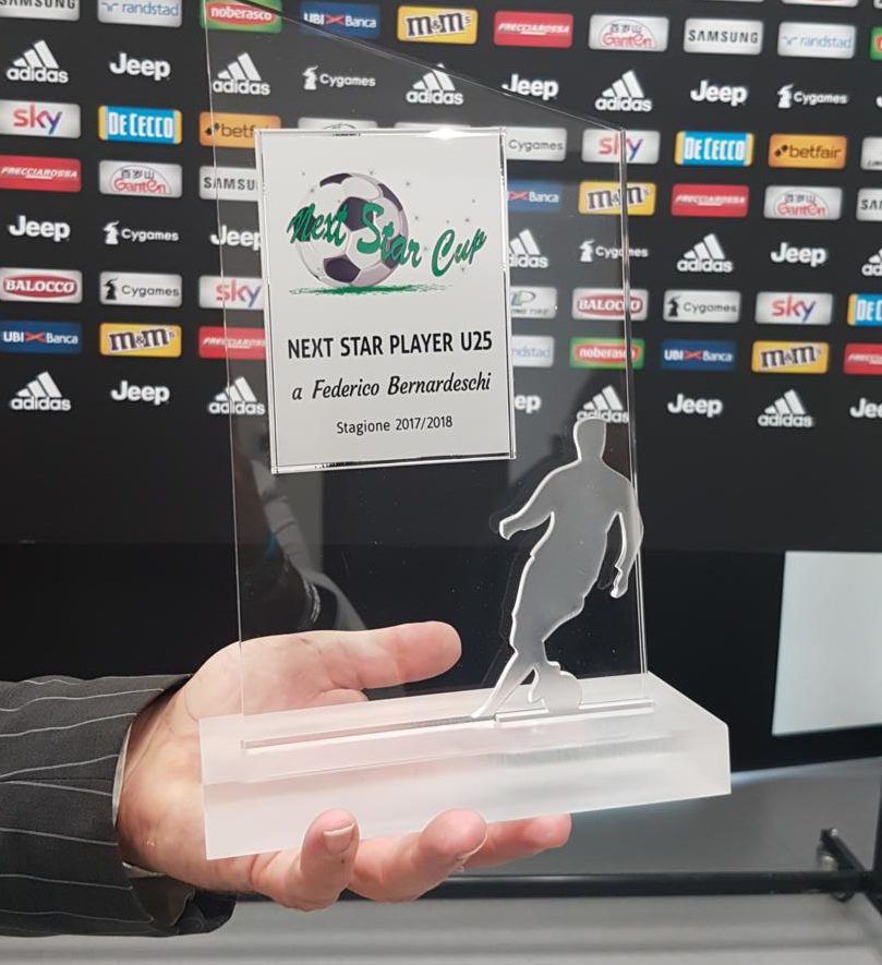 E’ stata una giornata piacevole quella che ha visto la consegna di un premio al calciatore della Juventus Federico Bernardeschi allo Juventus Training Center di Continassa. Infatti, il Comitato Organizzatore dei tornei giovanili di calcio Tuscany Youth Cup (Next Star Cup/King’s Cup) ha deciso di istituire due premi, King Star Player O25 e Next Star Player U25, assegnati ogni stagione sportiva agli atleti che si saranno contraddistinti per prestazioni ottimali e comportamento esemplare dentro e fuori dal campo. Un esempio per i piccoli calciatori che ogni anno calcano i campi dei nostri tornei. Per il Next Star Player la scelta è ricaduta su Federico Bernardeschi (Juventus) poichè nell’ultima stagione sportiva 2017/2018 (e non solo) ha unito giocate di livello con i valori di professionalità, correttezza e lealtà.